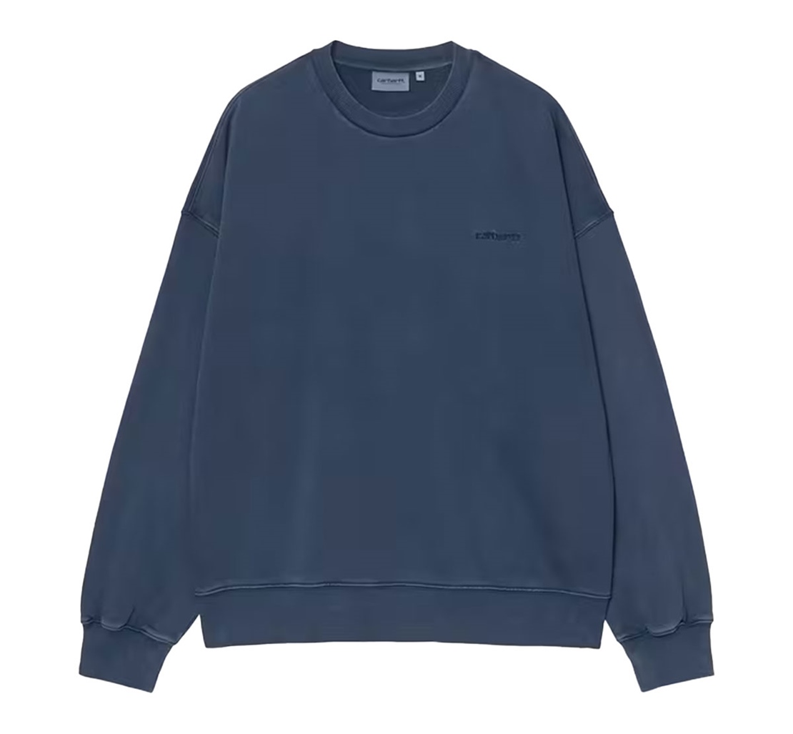 Der locker und kastig geschnittene Benton Sweat besteht aus einem schweren, ungebürsteten Baumwolljersey, der für ein weicheres Tragegefühl und eine komplexere Farbgebung stückgefärbt wurde. Auf der Brust befindet sich ein gesticktes Script Logo.